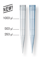 該規(guī)格吸頭適用于細口容器的移液或反復移液操作。長82 mm,外形細長。吸頭于 250 μl、500 μl及1000 μl處有刻度標記,便于快速檢查體積。預裝移液器吸頭無色透 明,放置于一個橙色的吸頭托架上。